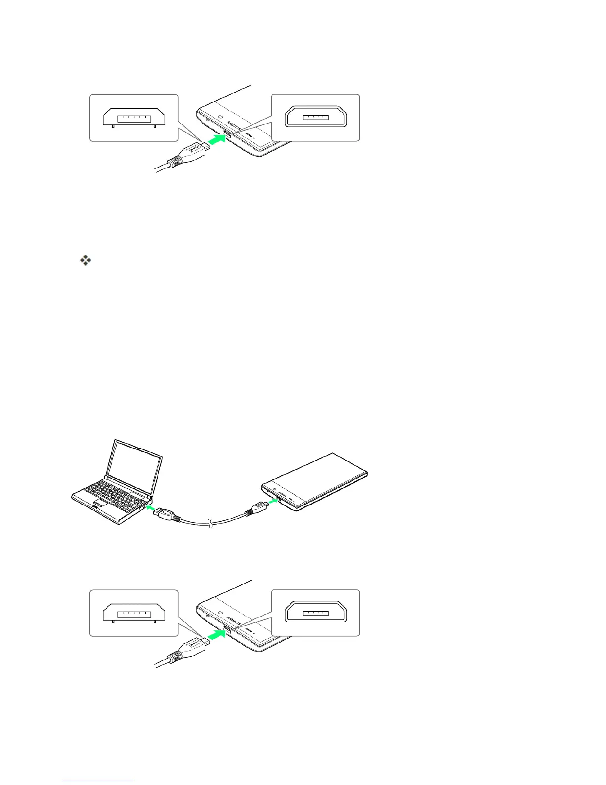 1. InsertthemicroUSBplugonthemicroUSBcableforPCintothecharger/accessoryjackonthe
