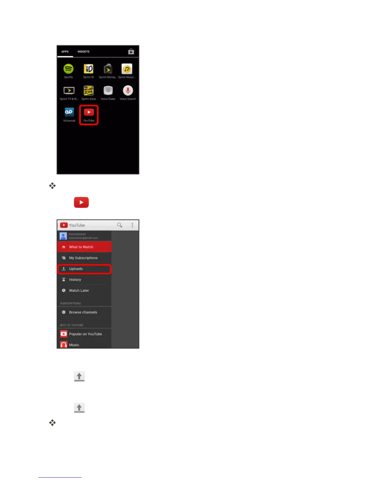 Touch atthetopofthescreenandthenselectavideotoupload.