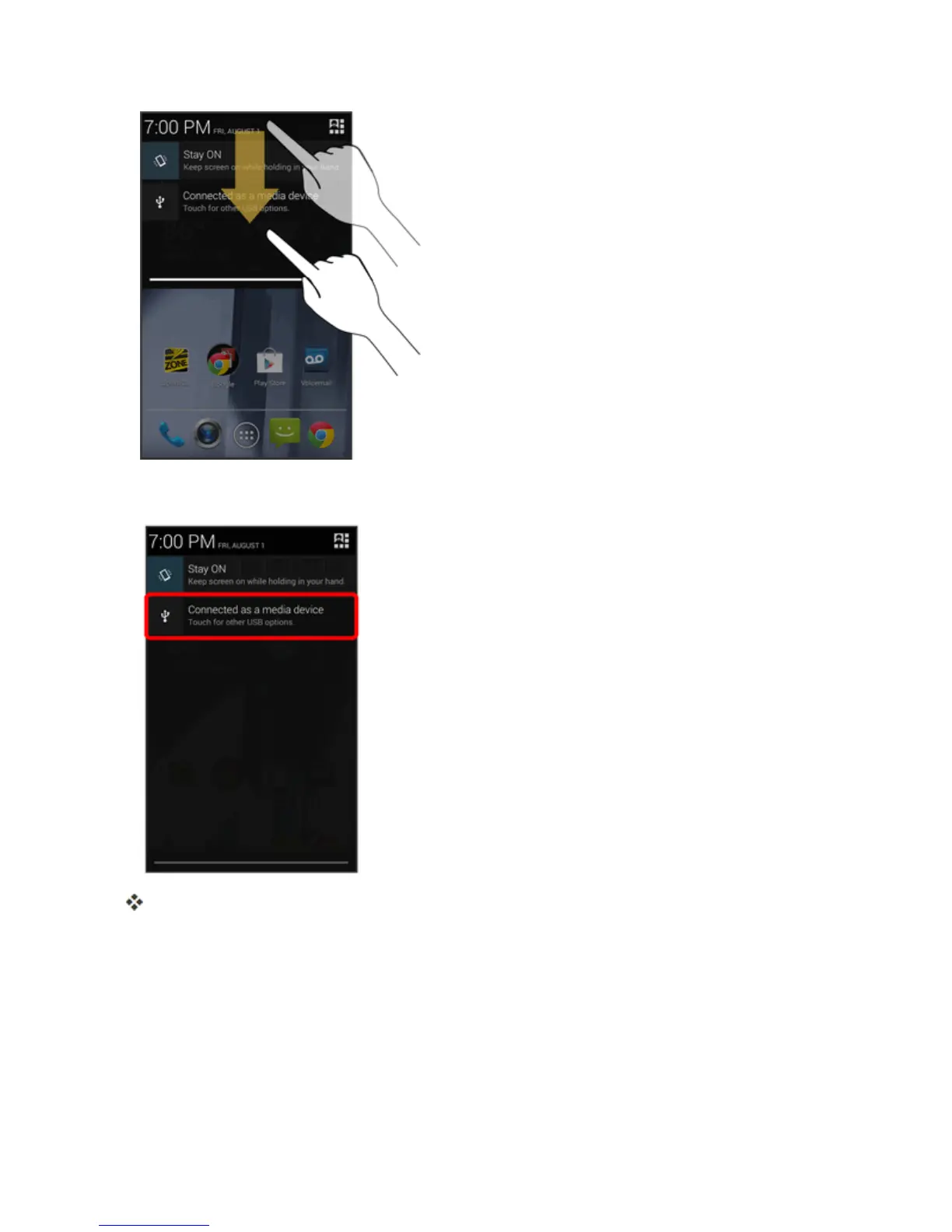 l Tochangetheoption,touchitinthenotificationswindowtoopentheSettings>USB