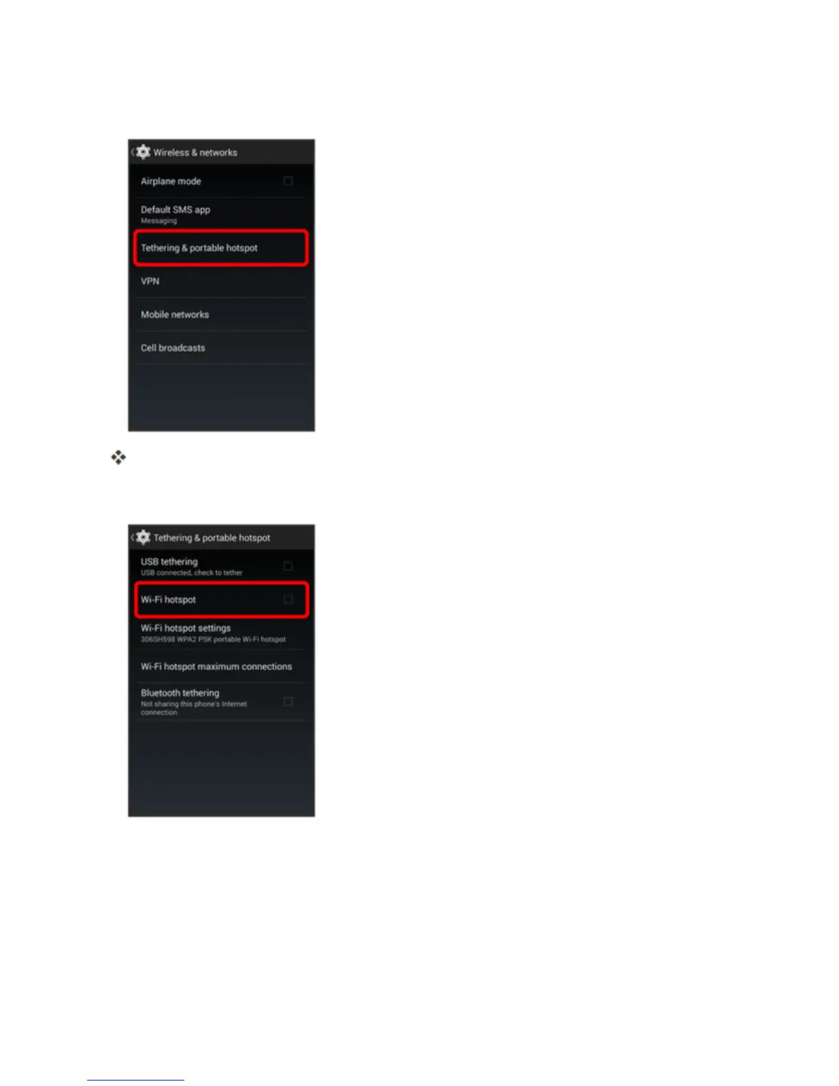 3. TouchWi-Fi hotspottoenableit.(Enabledwhenthecheckmarkisentered.)