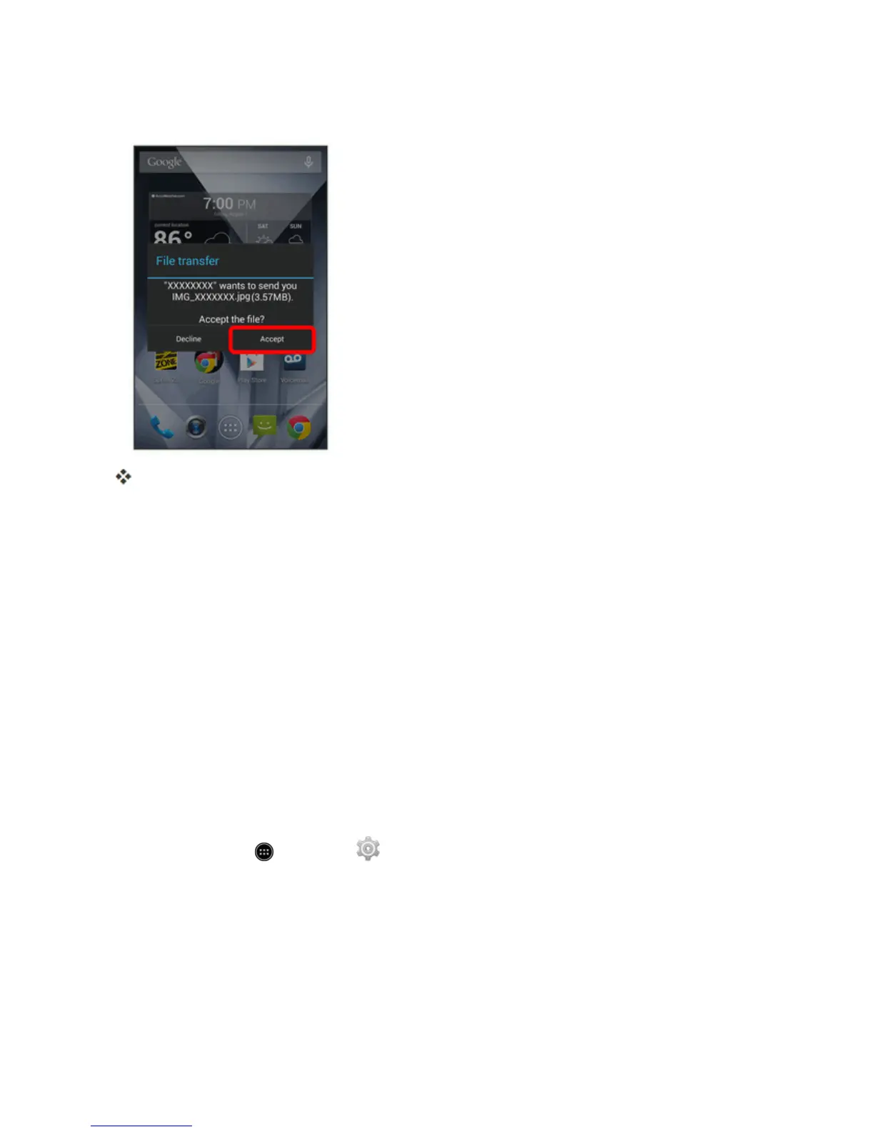 2. TouchBluetooth share: Incoming file,andthentouchAccept.