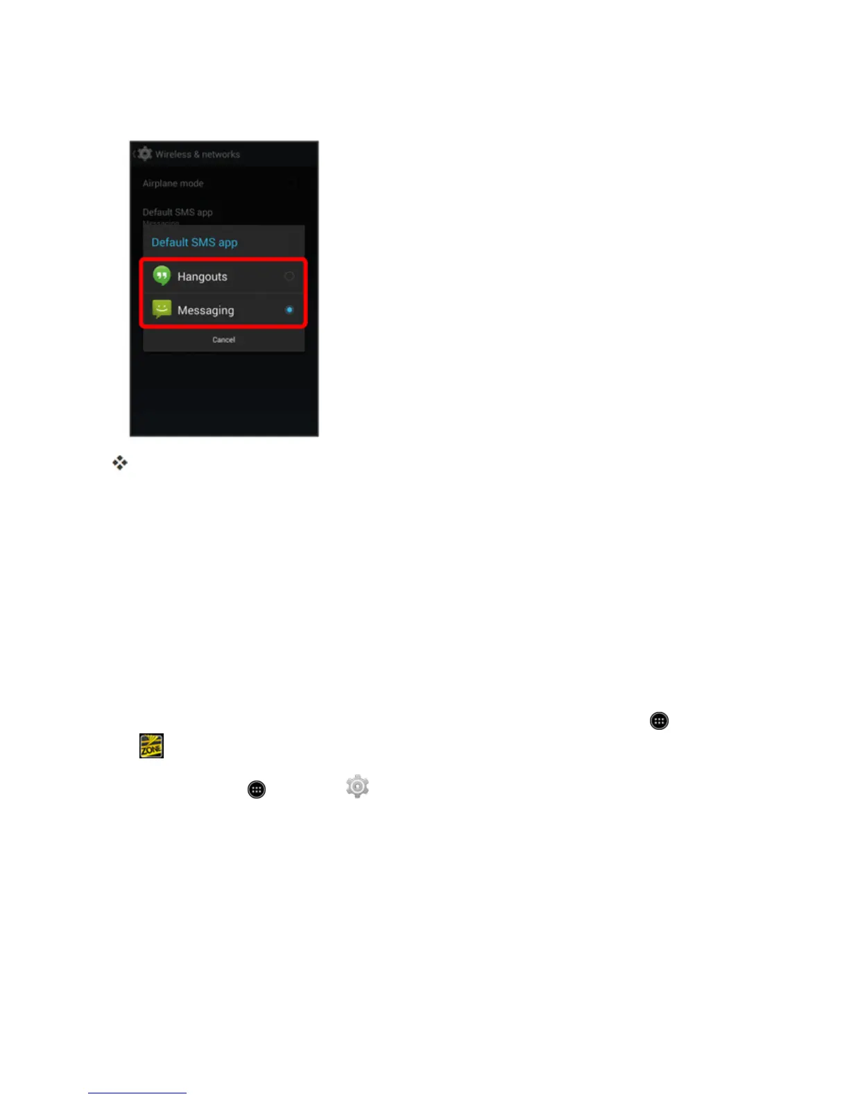 Note:IfyouchooseadefaultmessagingappotherthanMessaging(forexample,GoogleHangouts