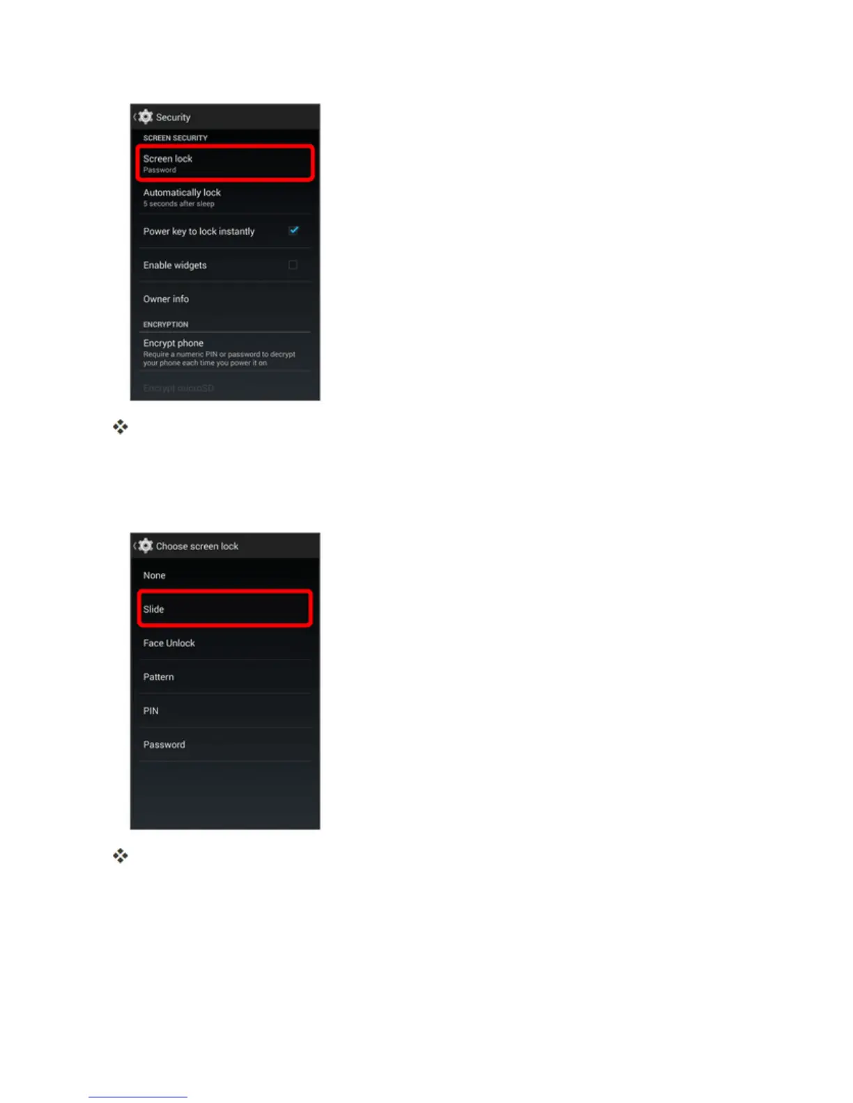 n FromtheScreenlocksettingsmenu,touchSlidetosavethesetting.