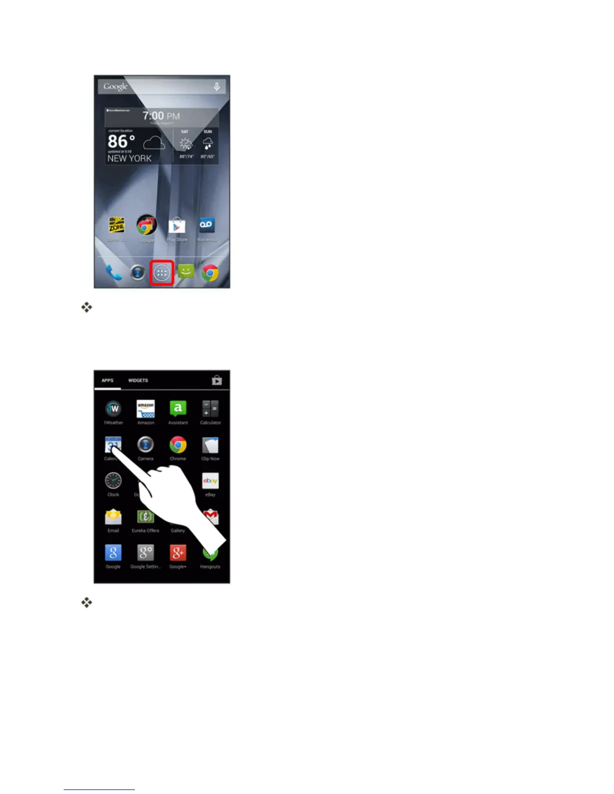 2. Touchanappicontolaunchthecorrespondingapplication.Youmayneedtoscrollleftorrightto