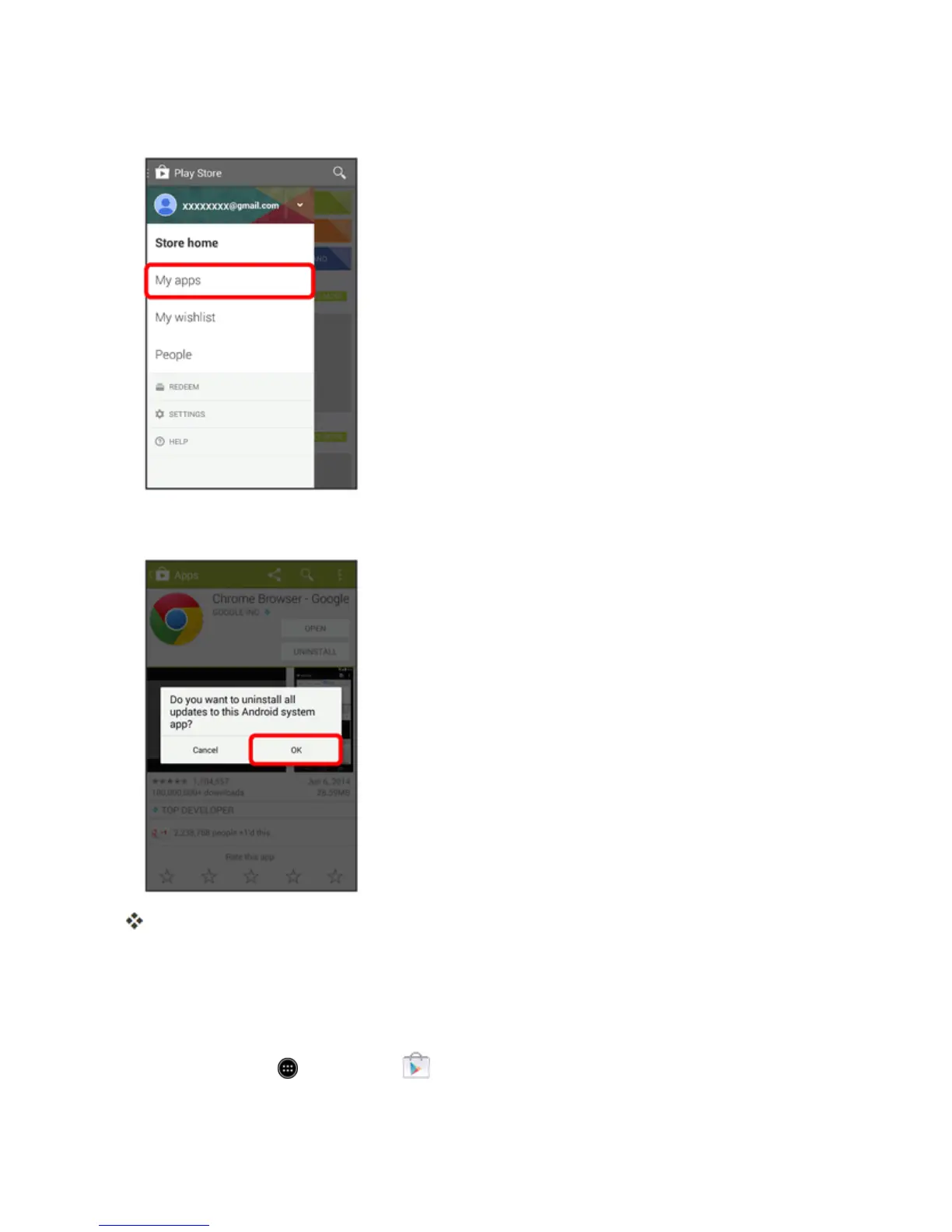 4. OntheInstalledscreen,touchtheappyouwanttouninstall,andthentouchUNINSTALL>OK.