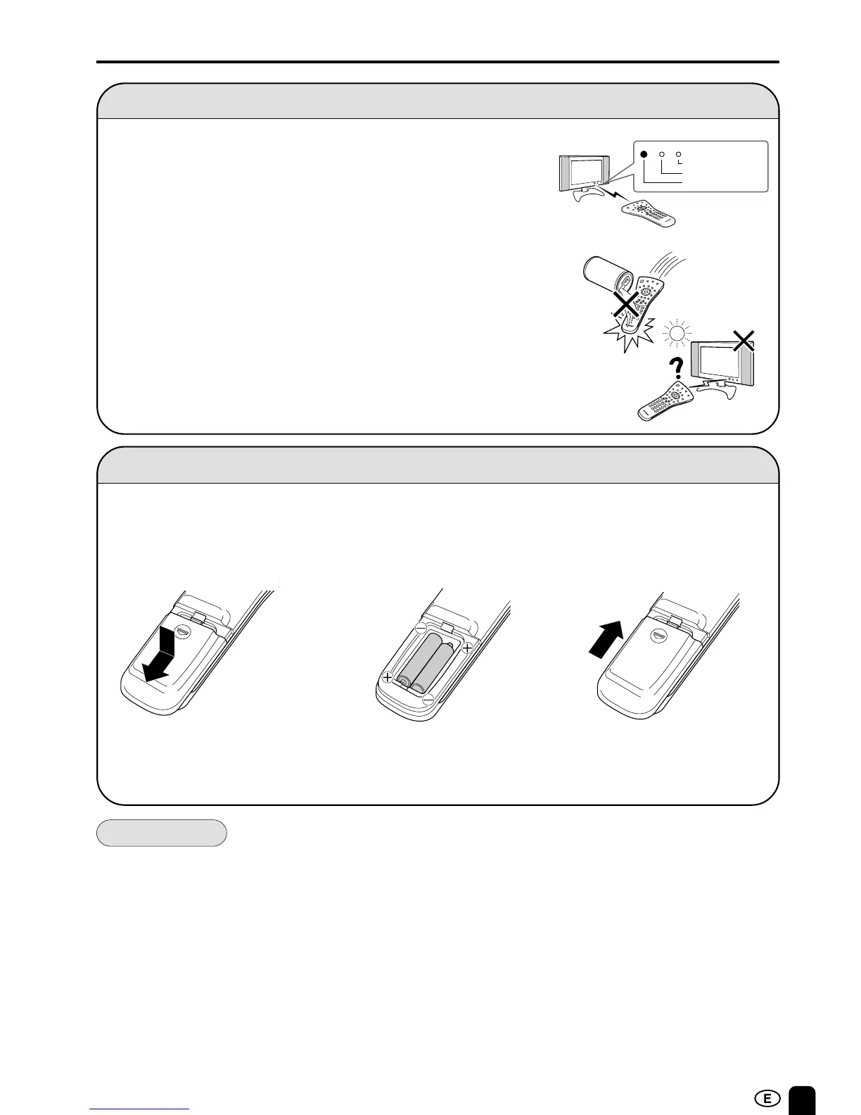 • If the remote control is not used for an extended period of time, remove batteries from the remote