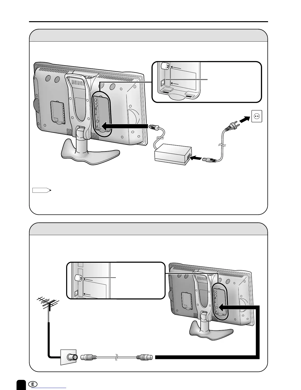 • Always turn the main power switch of the LCD TV set to OFF when connecting the AC adapter.