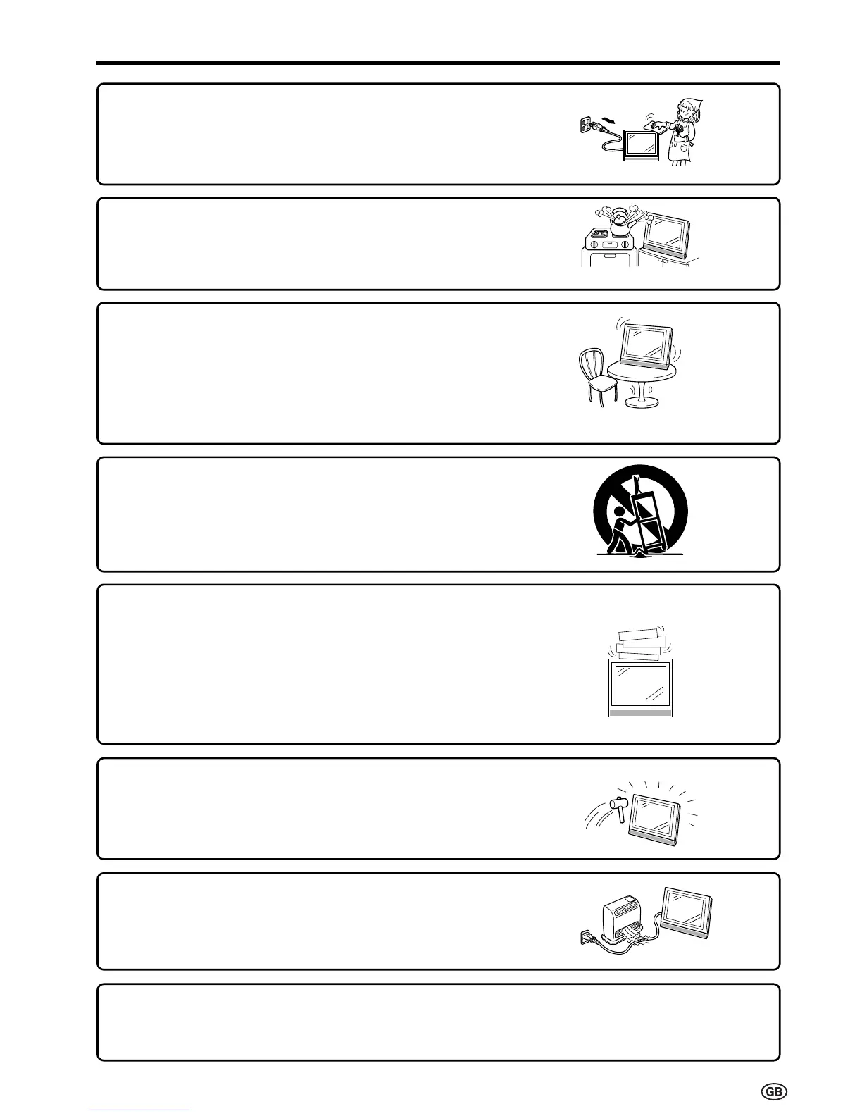 ■ Stand—Do not place the product on an unstable cart, stand,