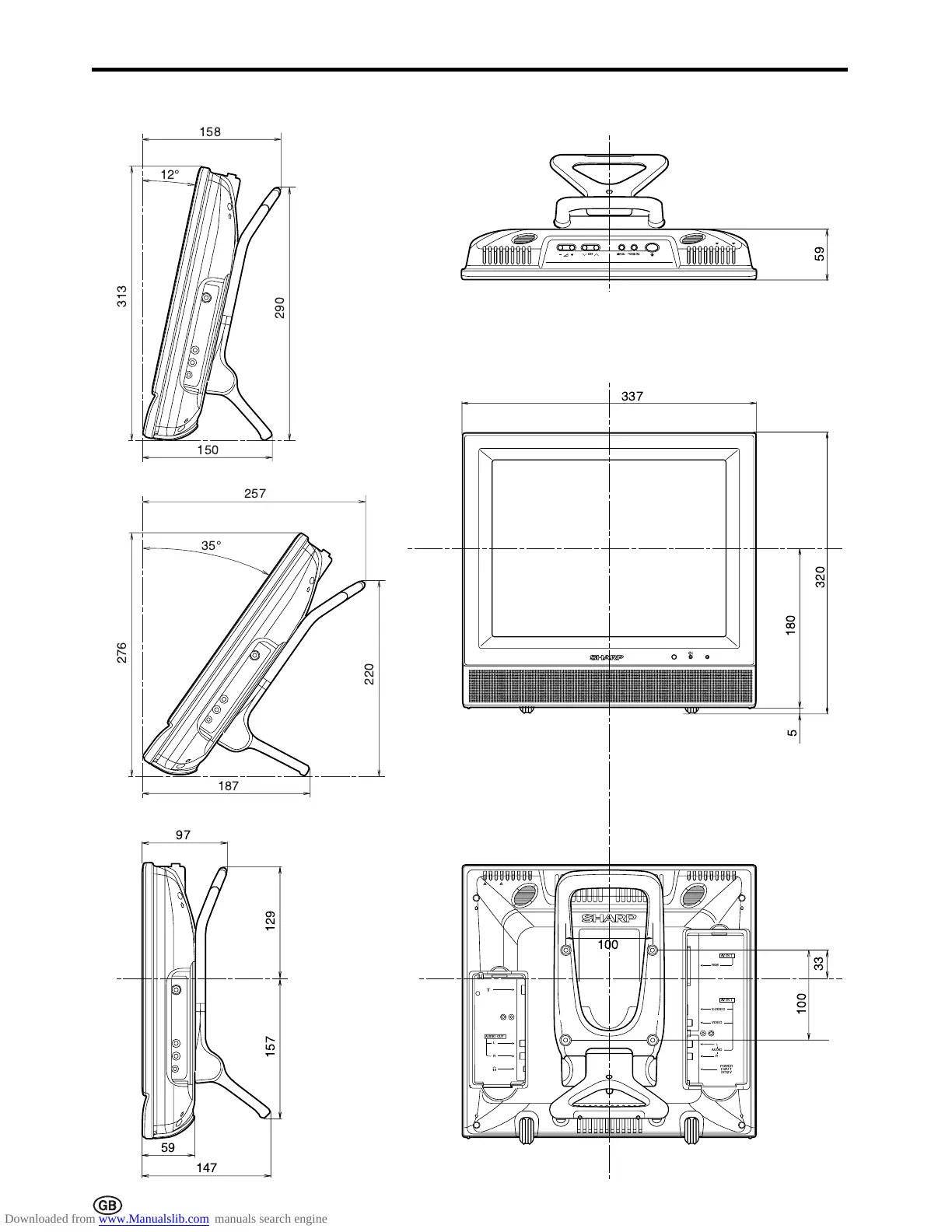 Sharp Aquos LC-13E1E - Dimensional Drawings