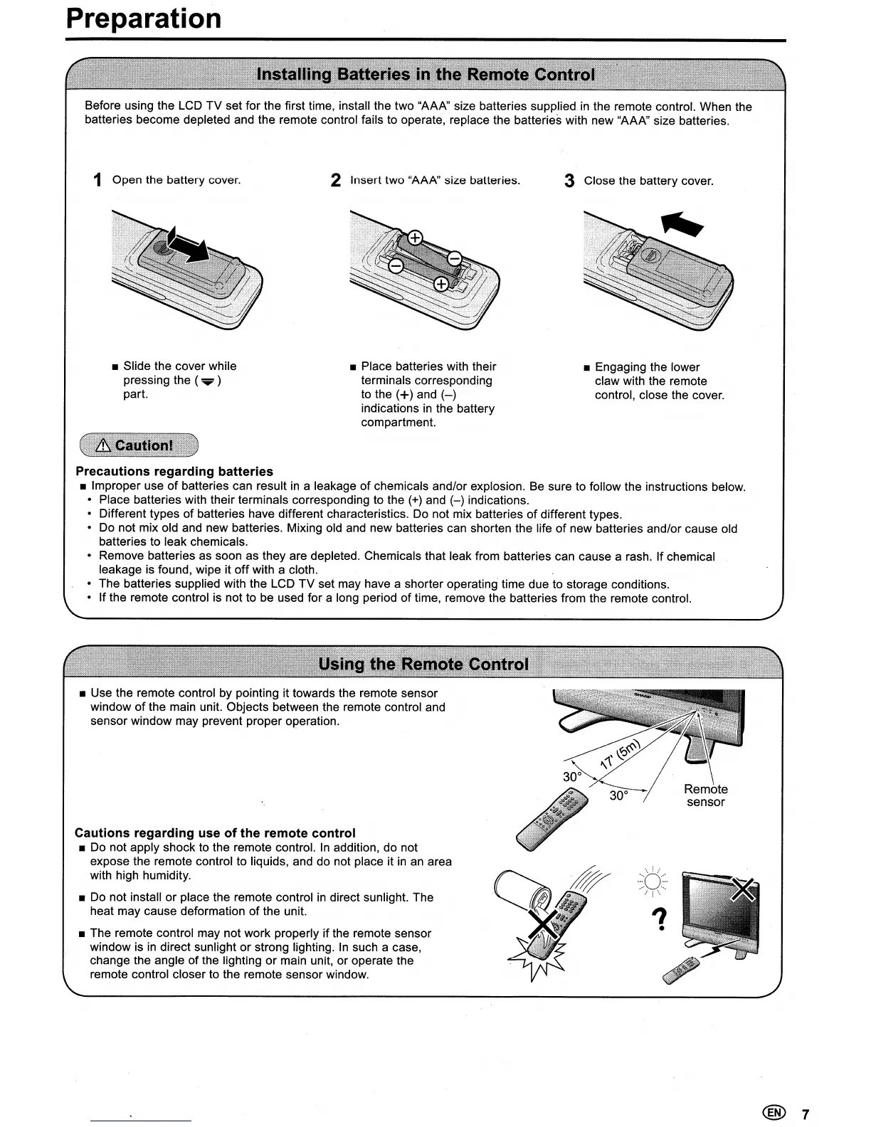 batteries become depleted and the remote control fails to operate, replace the batteries with new "AAA" size batteries.