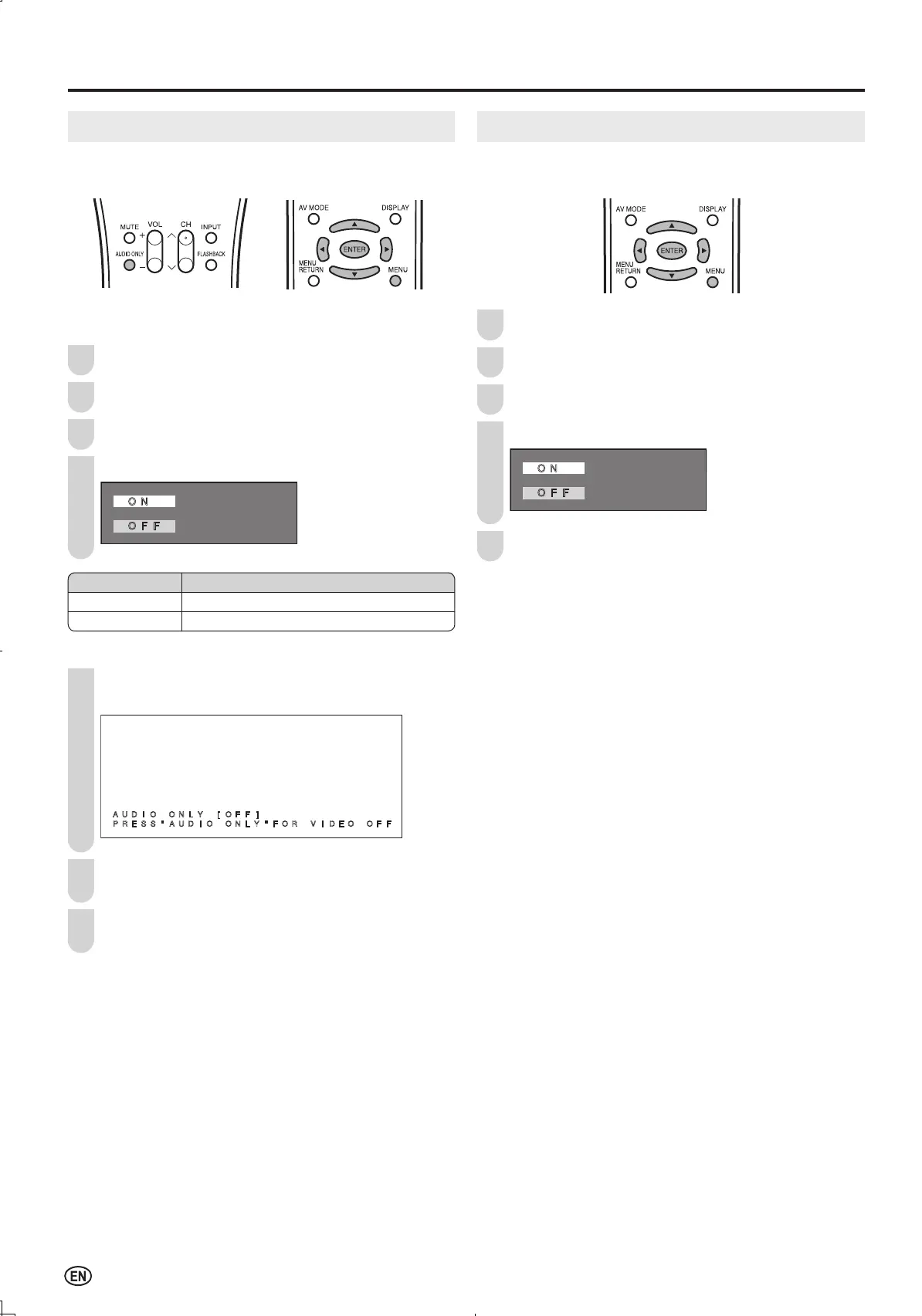 Setting the AUDIO ONLY on the Menu screen