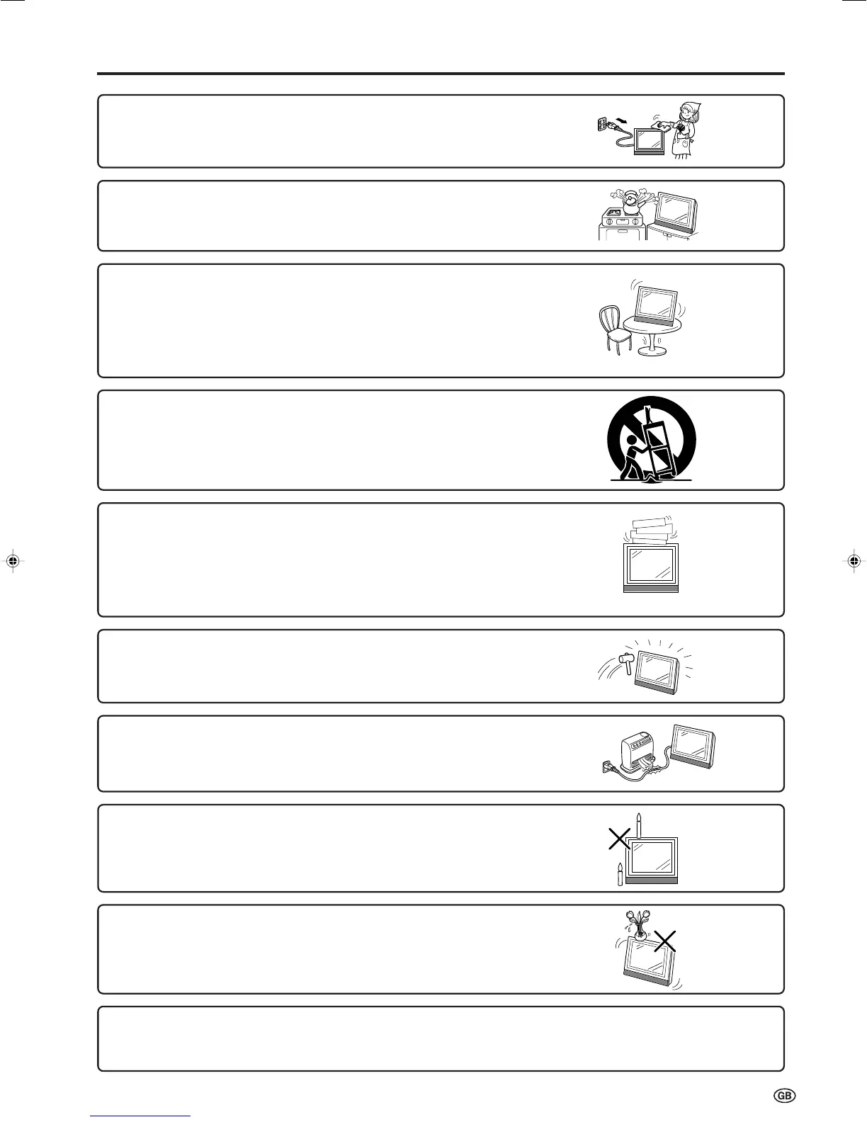 ■ Stand—Do not place the product on an unstable cart, stand, tripod or