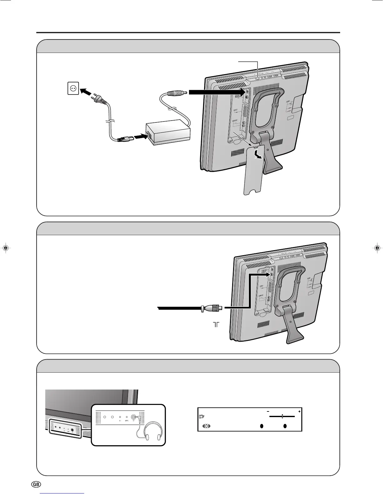 (MAIN POWER) switch of the LCD TV set to OFF when connecting the AC adapter.