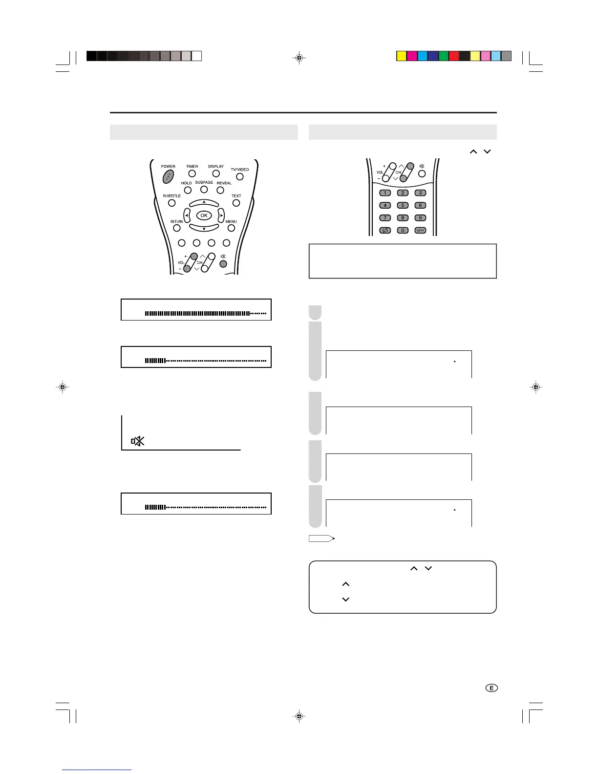 e (Mute) or VOL (+)/(–) to turn the sound back to