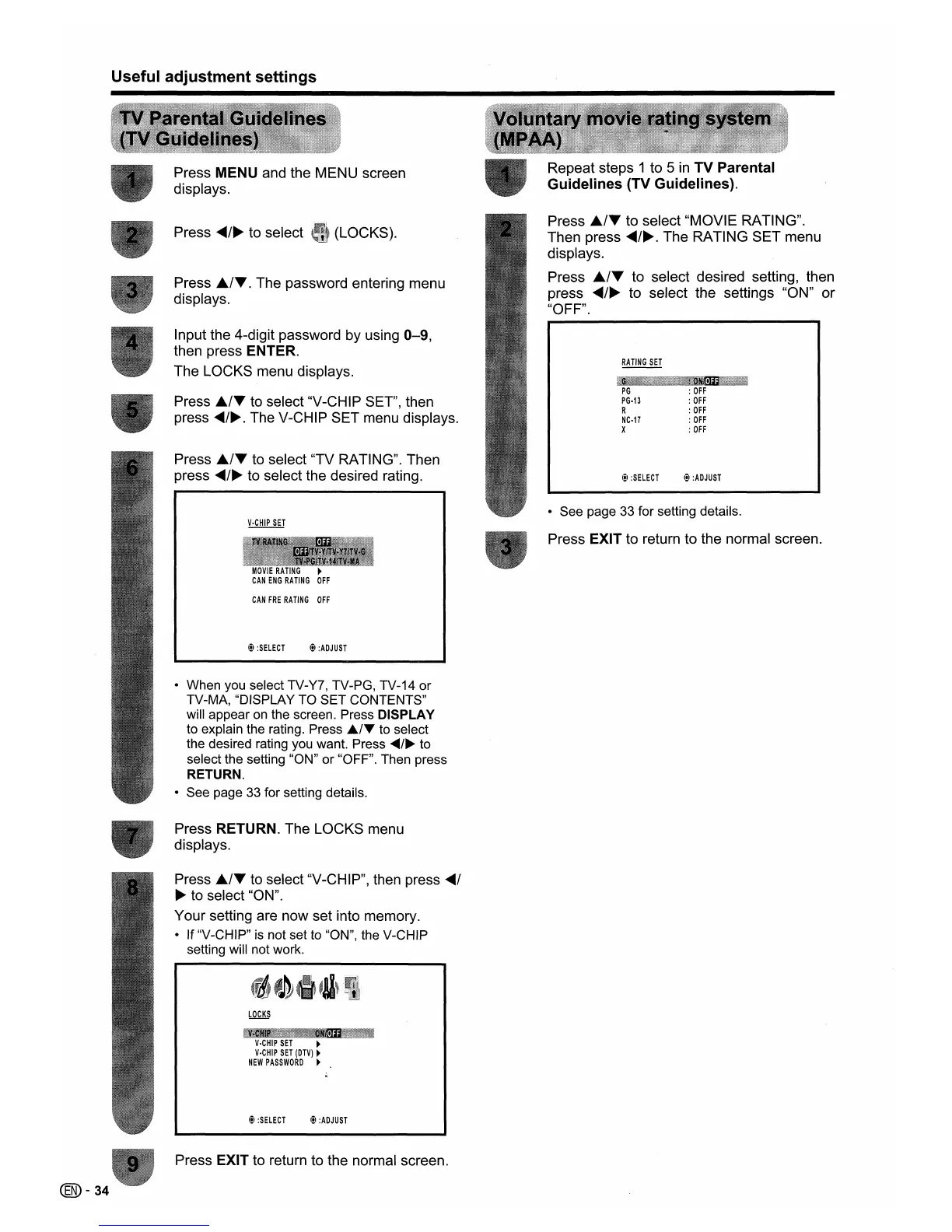 to select "TV RATING". Then