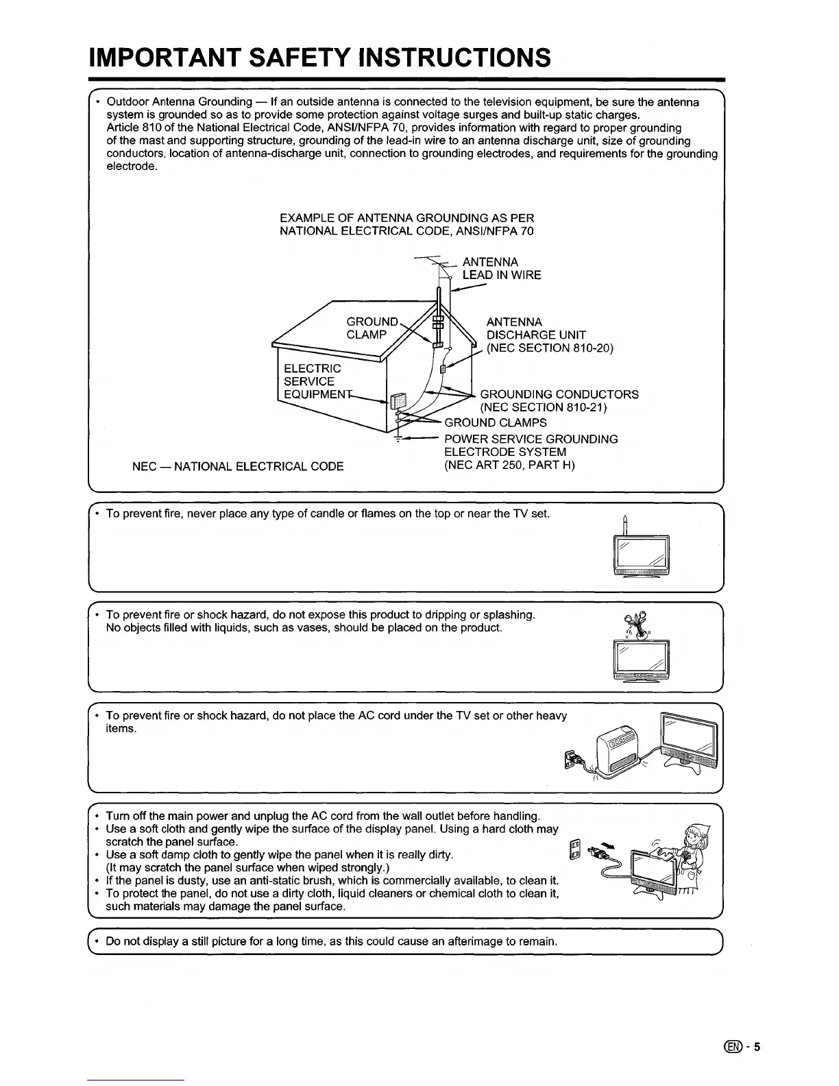 • Outdoor Antenna Grounding - If an outside antenna is connected to the television equipment, be sure the antenna