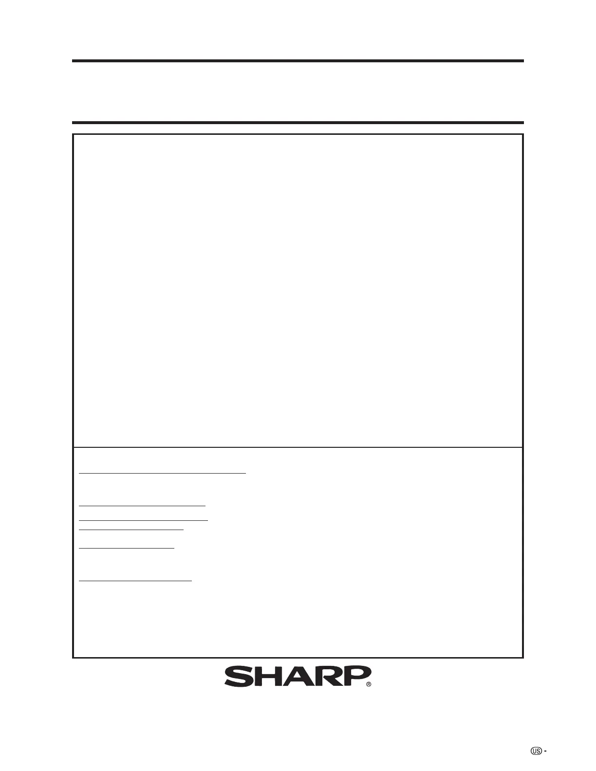 TO OBTAIN PRODUCT INFORMATION, CALL 1-800-BE-SHARP OR VISIT www.sharpusa.com