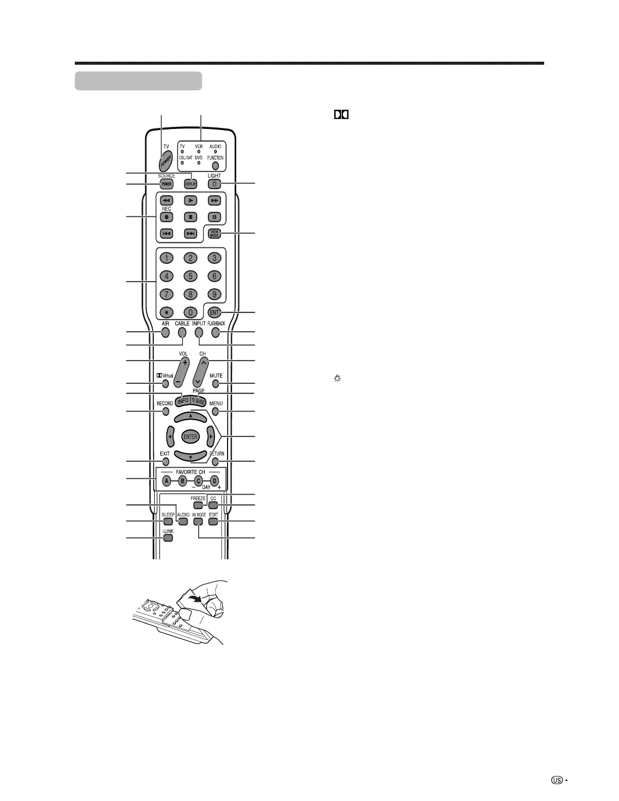 SAT, VCR, DVD and AUDIO operation. Indicator lights