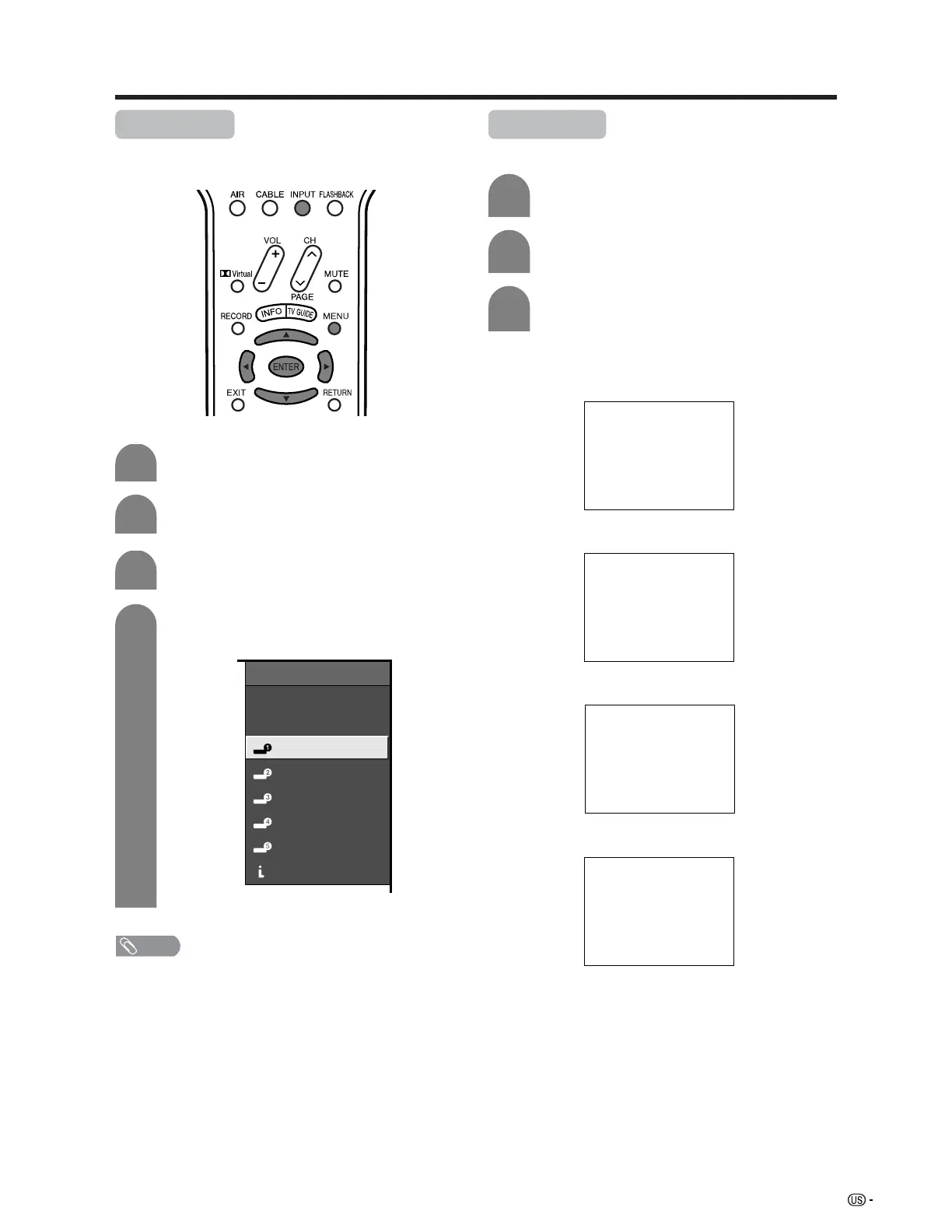 INPUT SOURCE menu or channel display.