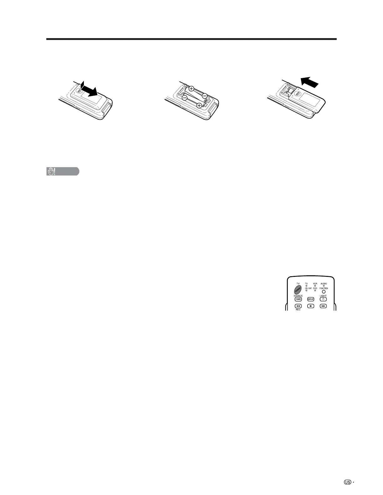 • If you will not be using the remote control unit for an extended period of time, remove batteries from it.