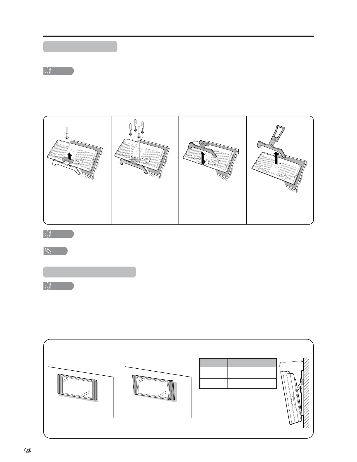 Before detaching (or attaching) stand, unplug the AC cord from the AC input terminal.