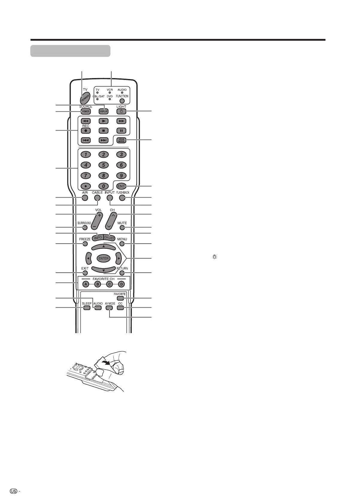 SAT, VCR, DVD and AUDIO operation. Indicator lights