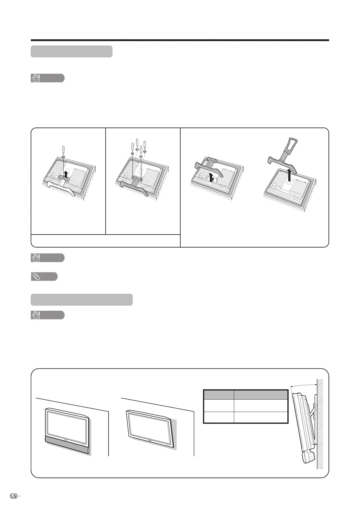 Before detaching (or attaching) stand, unplug the AC cord from the AC input terminal.