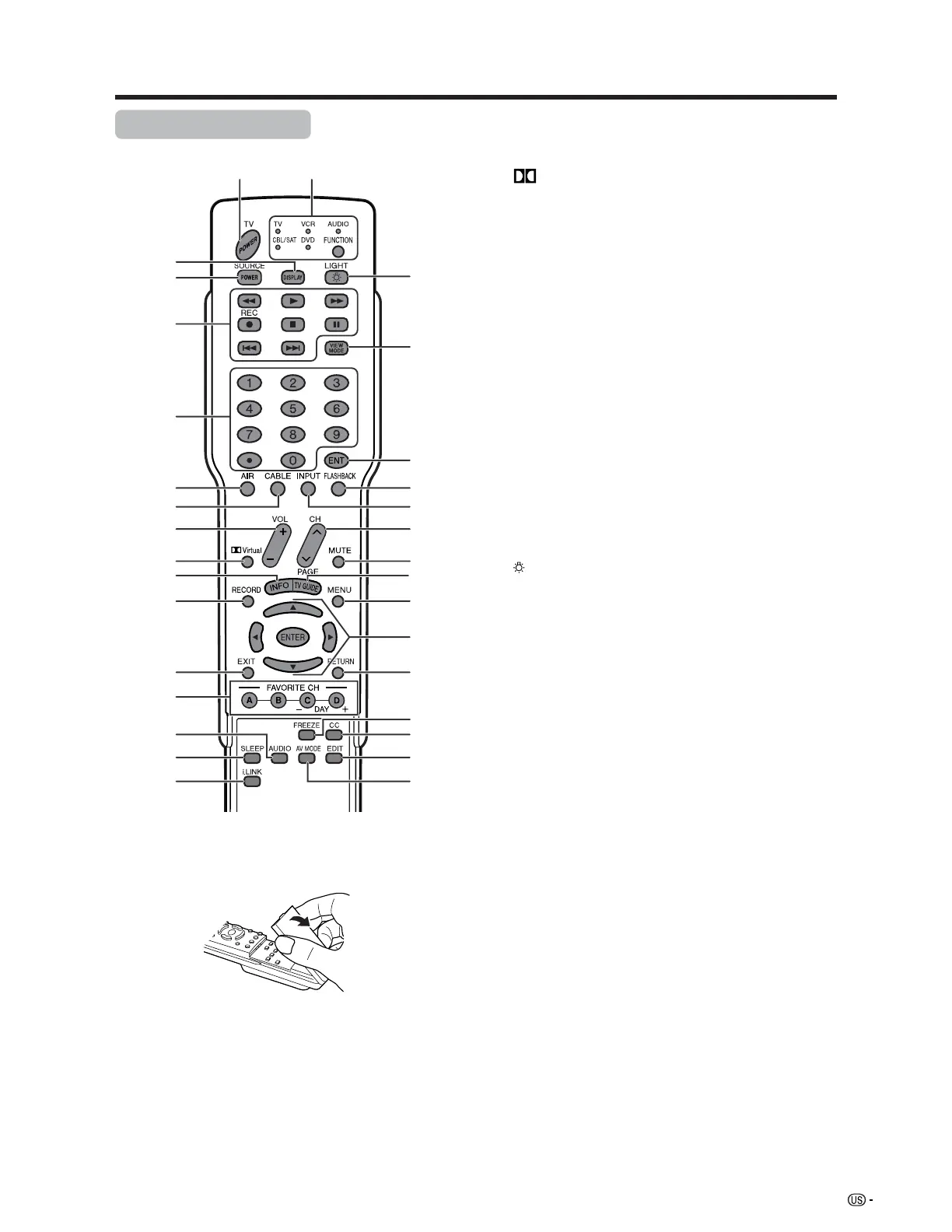 SAT, VCR, DVD and AUDIO operation. Indicator lights