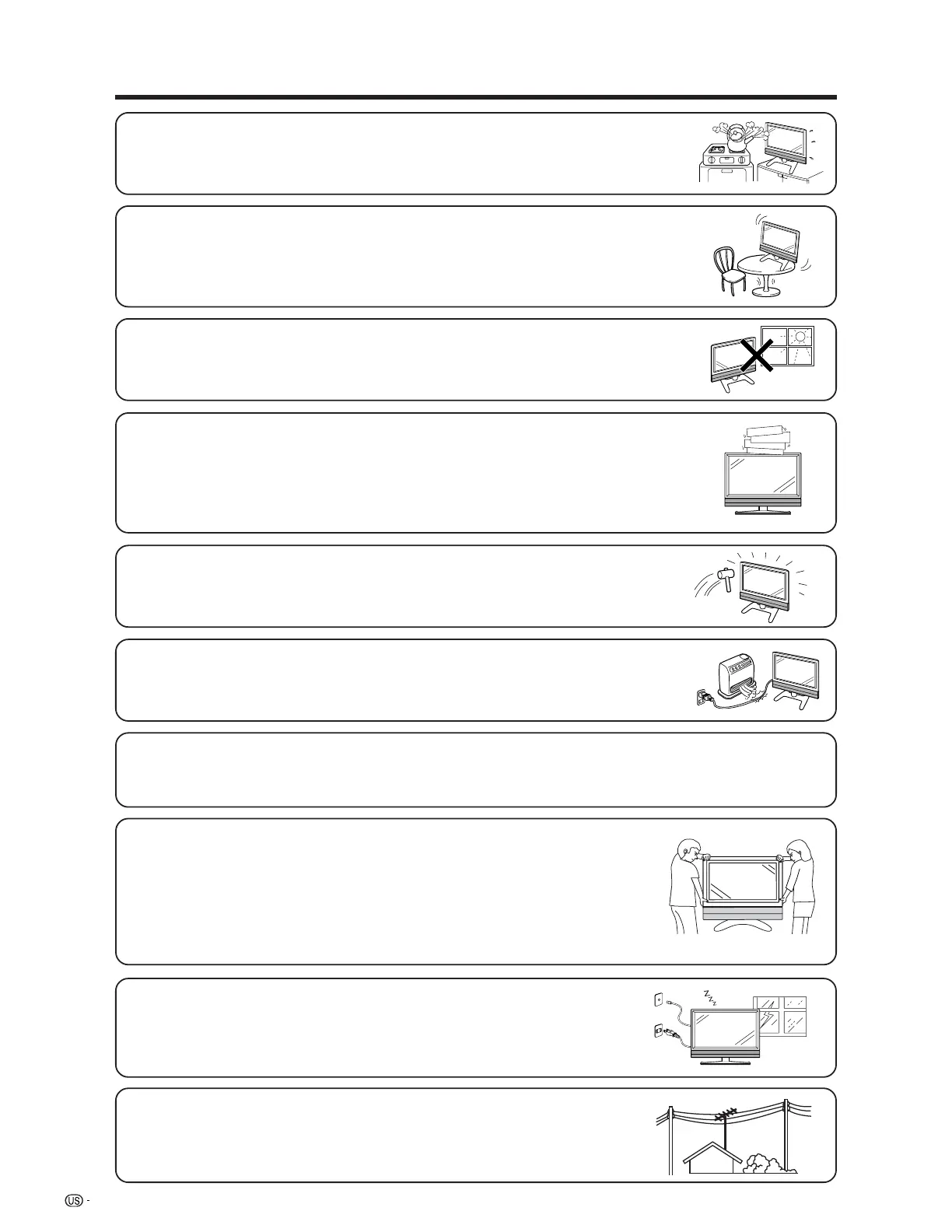 Stand — Do not place the product on an unstable cart, stand, tripod or table. Placing the