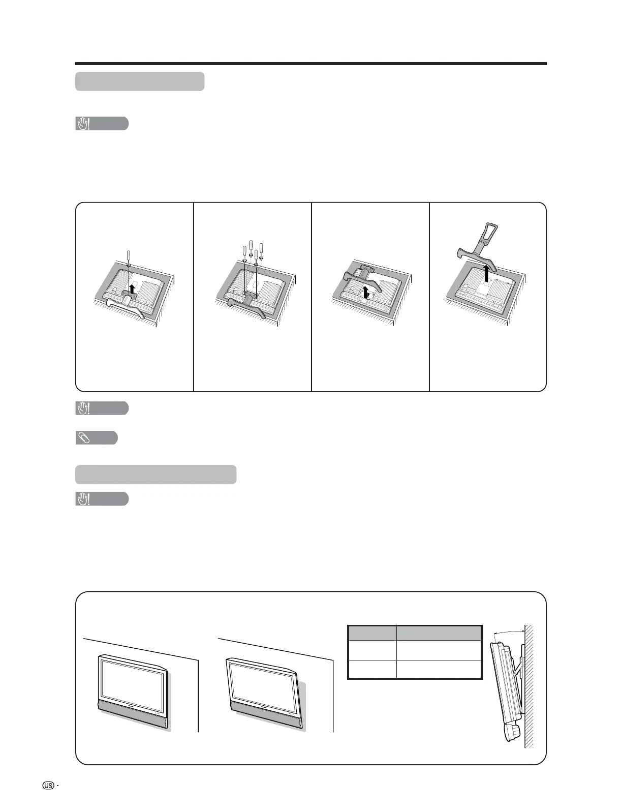 Before detaching (or attaching) stand, unplug the AC cord from the AC input terminal.
