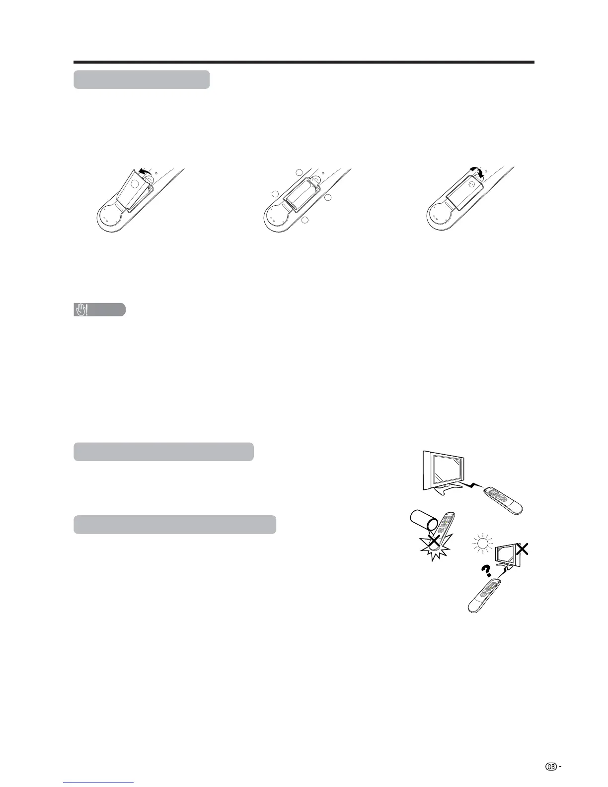 • If you will not be using the remote control unit for an extended period of time, remove the batteries from it.