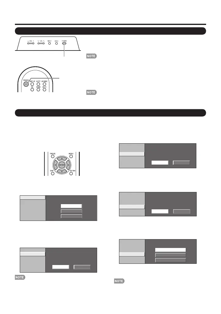 • The initial setup starts when the TV powers on for the fi rst time. If the TV has