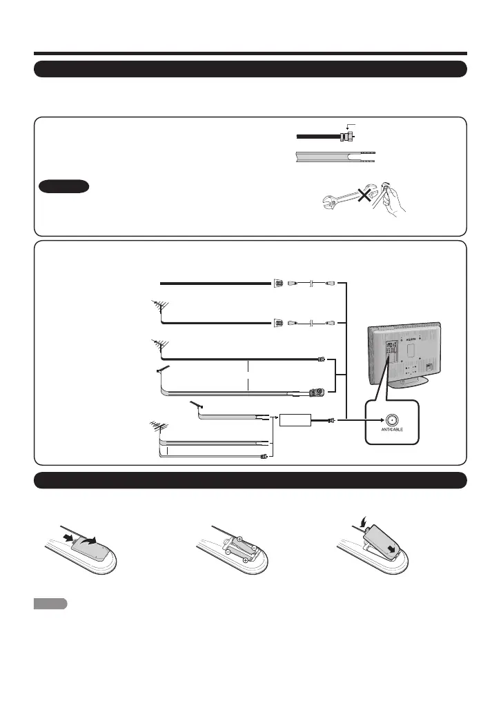 • Connect the antenna cable to the TV using one of the methods in the illustration as shown (