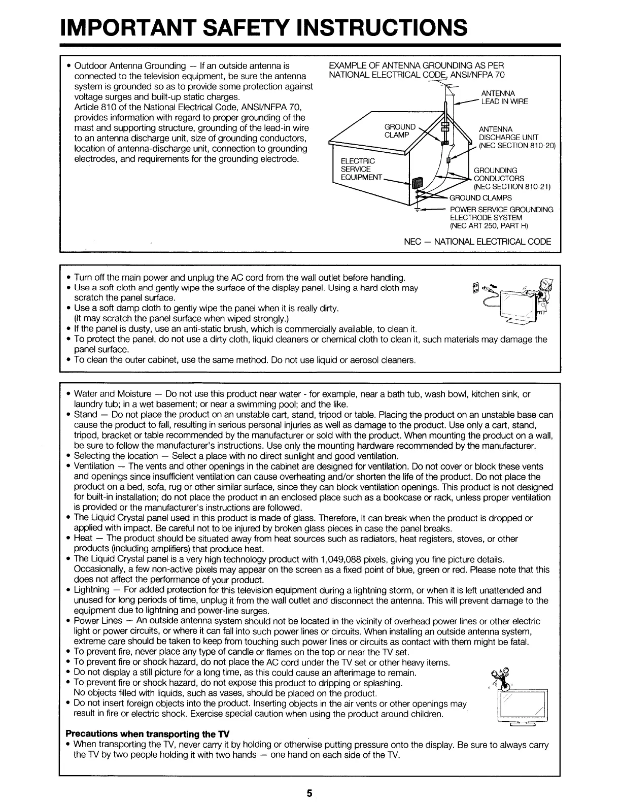• The Liquid Crystal panel is a very high technology product with 1,049,088 pixels, giving you fine picture details.