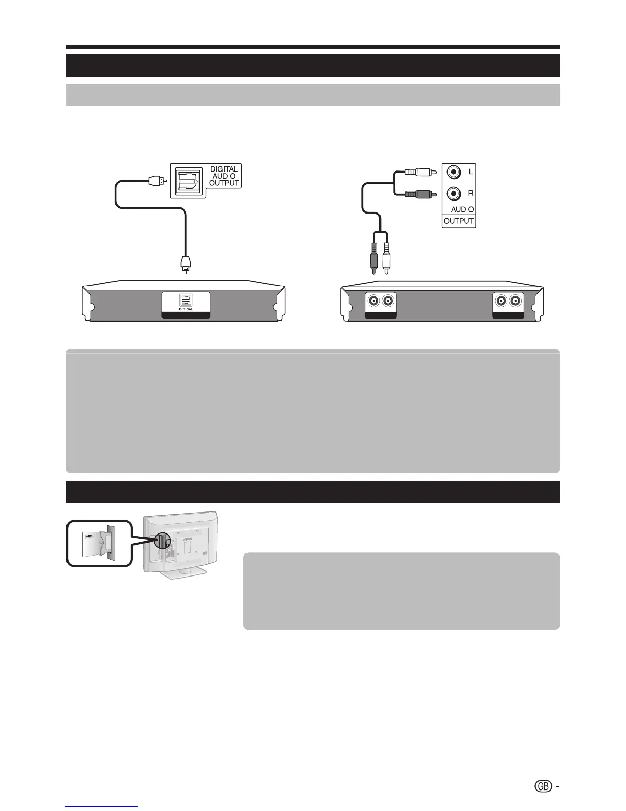 After connecting an amplifier with digital audio input and external speakers as shown, you should set an audio
