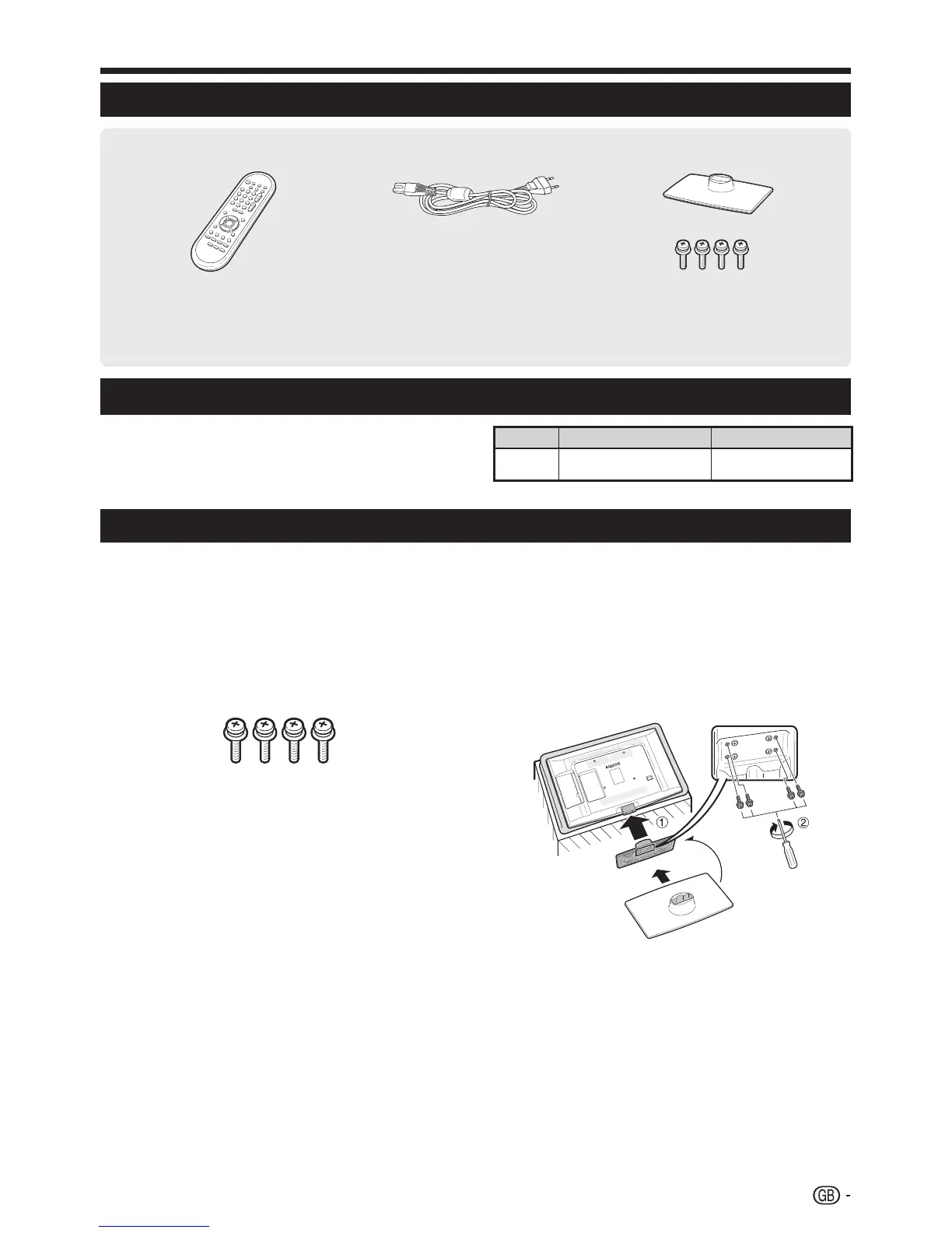 Remote control unit ( x 1) AC cord ( x 1) Stand unit ( x 1)
