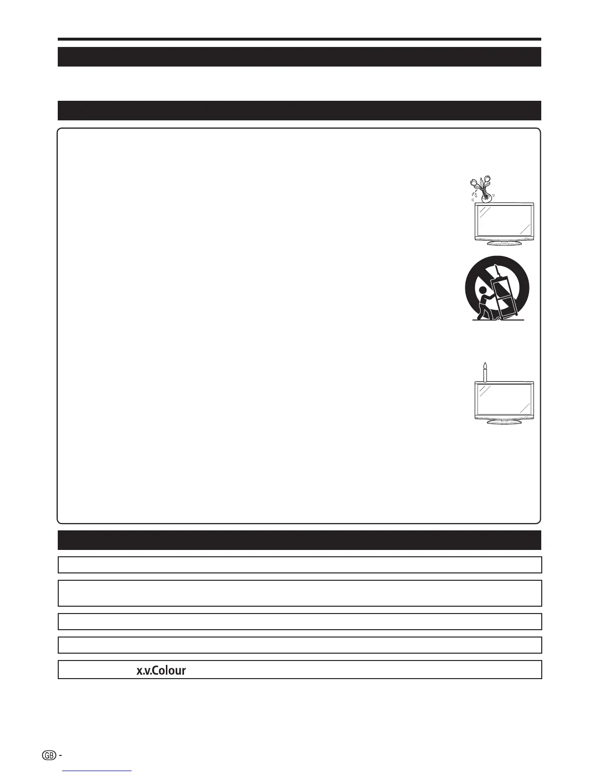 To prevent fire, never place any type of candle or naked flames on the top or near the TV set.