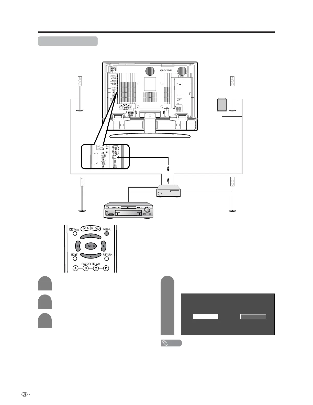 • Sound from Center Channel Input terminal is output from