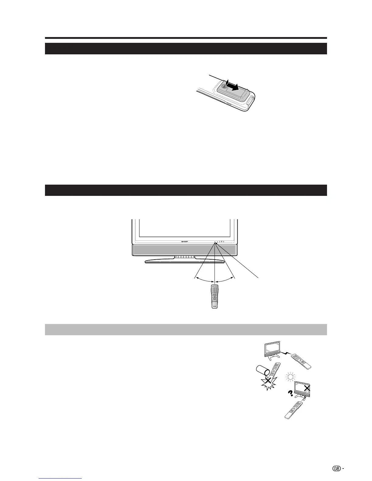 Before using the TV for the first time, insert two “AAA” size batteries (supplied). When the batteries become