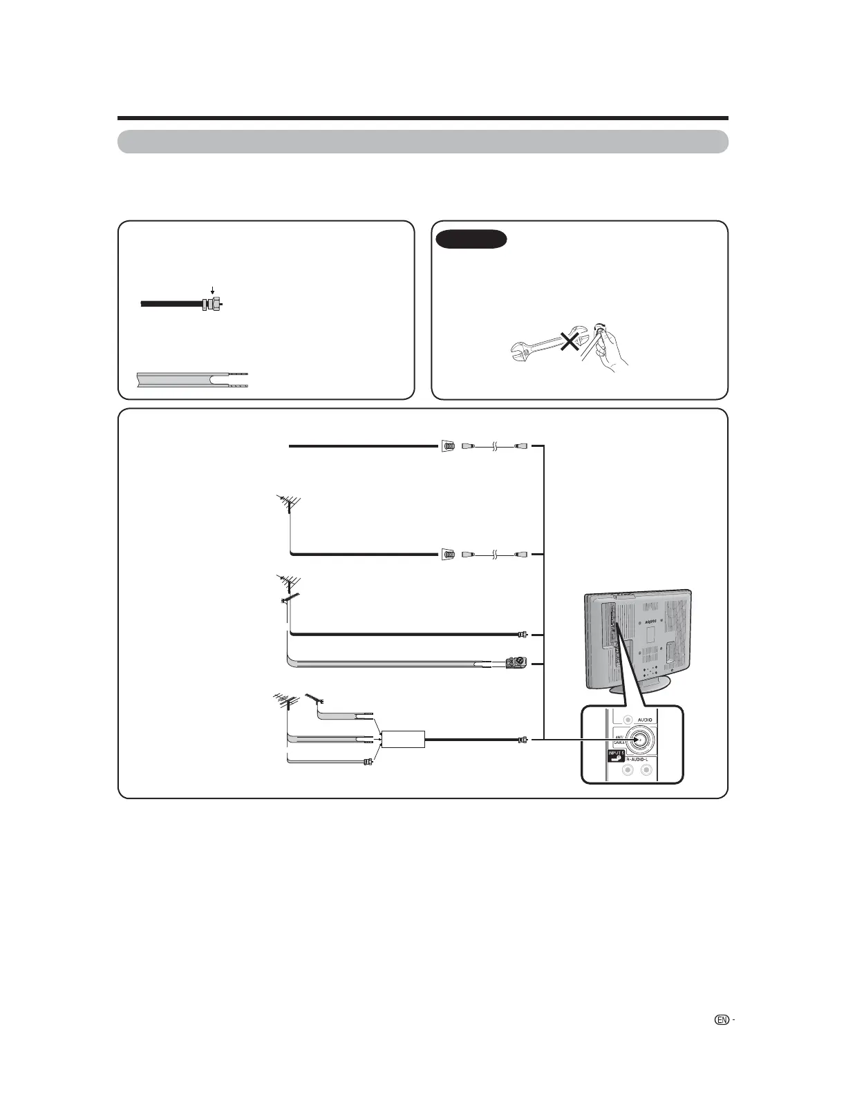 To enjoy a clearer picture, use an outdoor antenna. The following is a brief explanation of the types of connections