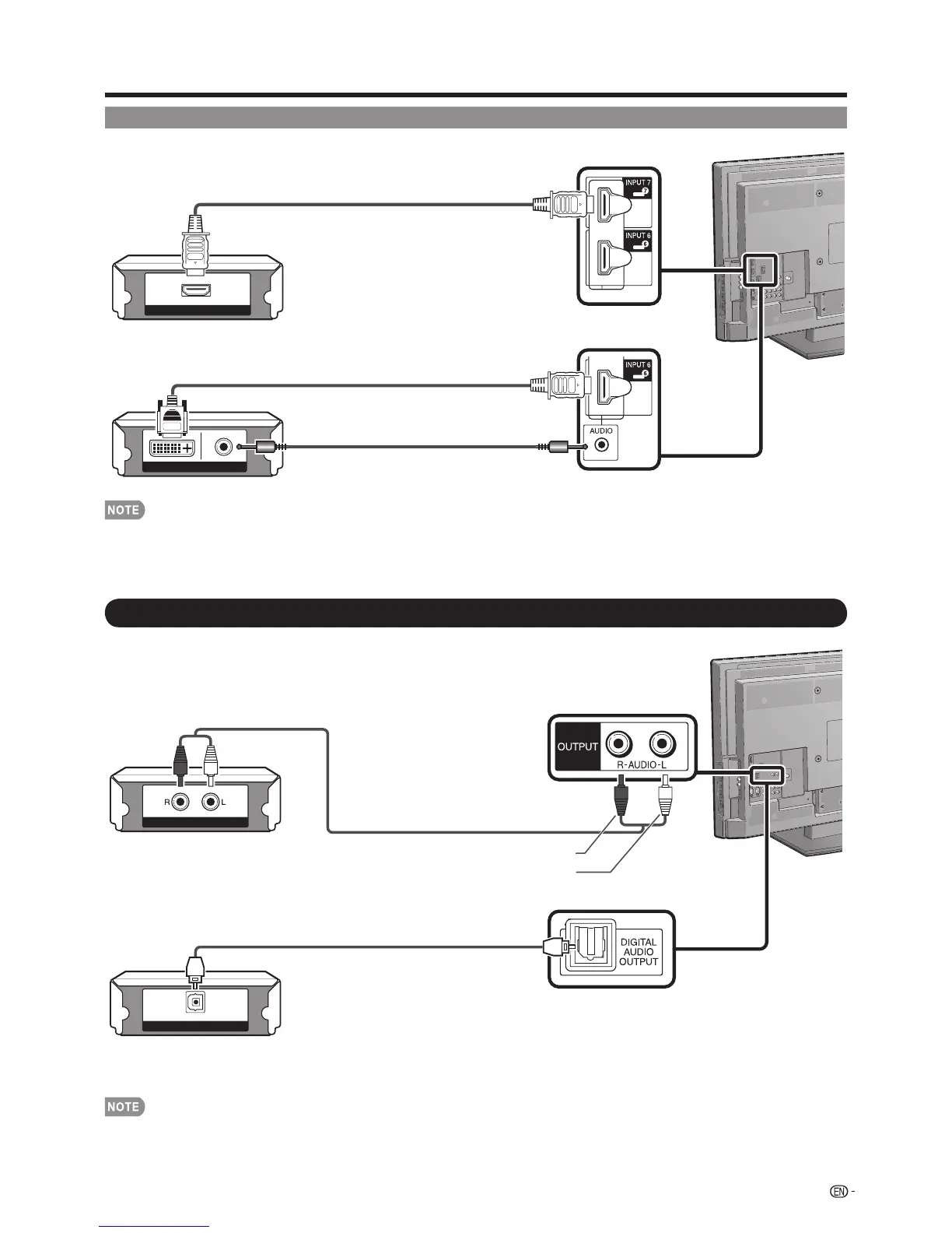 • Depending on the connected equipment, audio will not output from the DIGITAL AUDIO OUTPUT terminal in HDMI