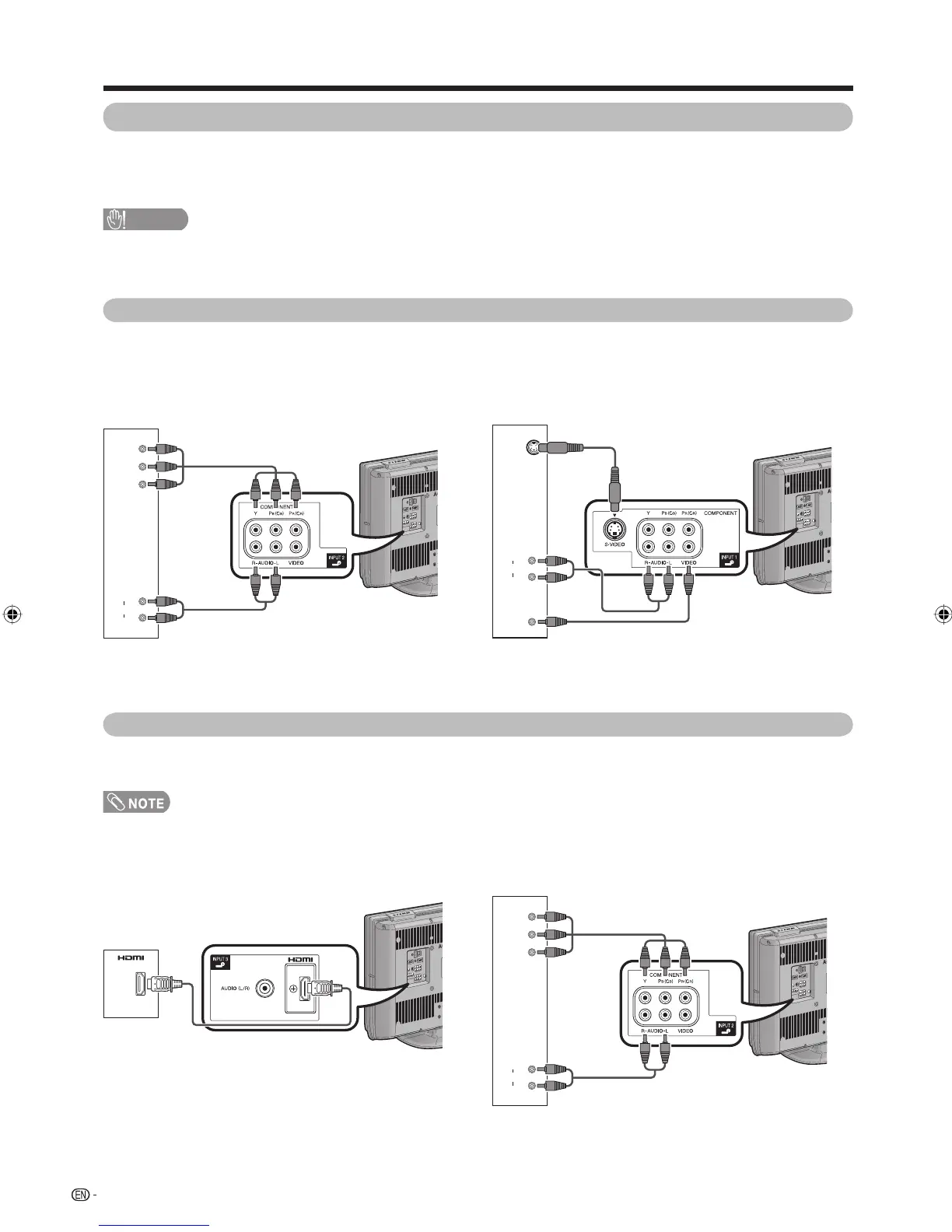 • Refer to the relevant operation manual (VCR, DVD player, etc.) carefully before making connections.