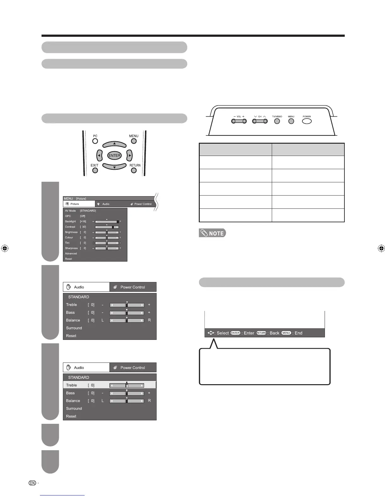 • The Menu can be operated with the remote control unit.