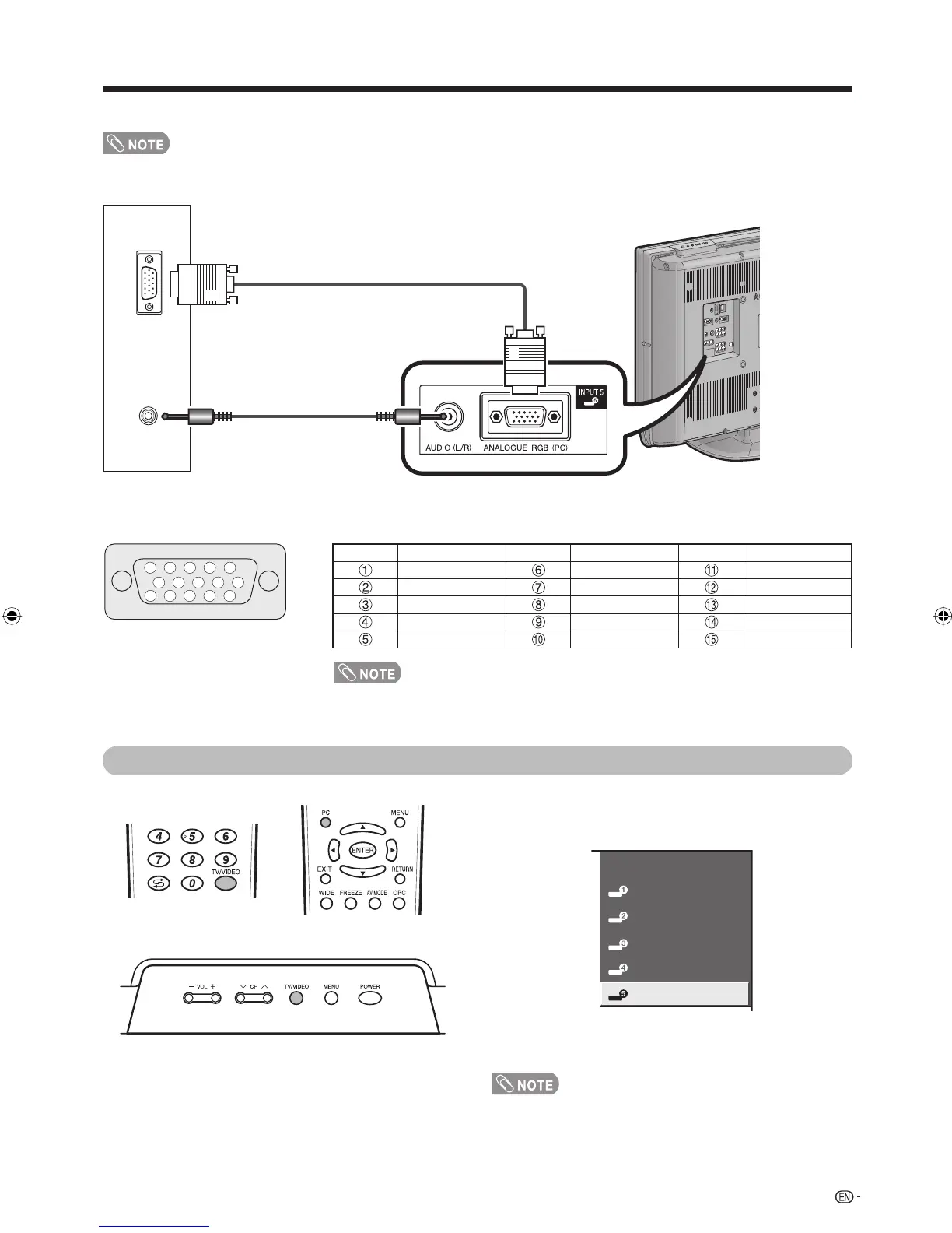 • Refer to page 44 for a list of PC signals compatible with the TV.