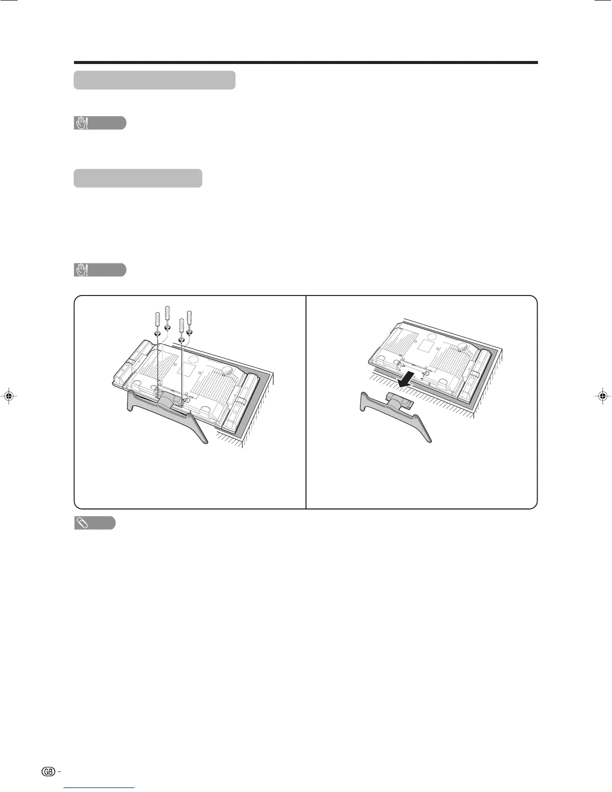 • Before detaching (or attaching) stand, unplug the AC cord from the AC outlet.
