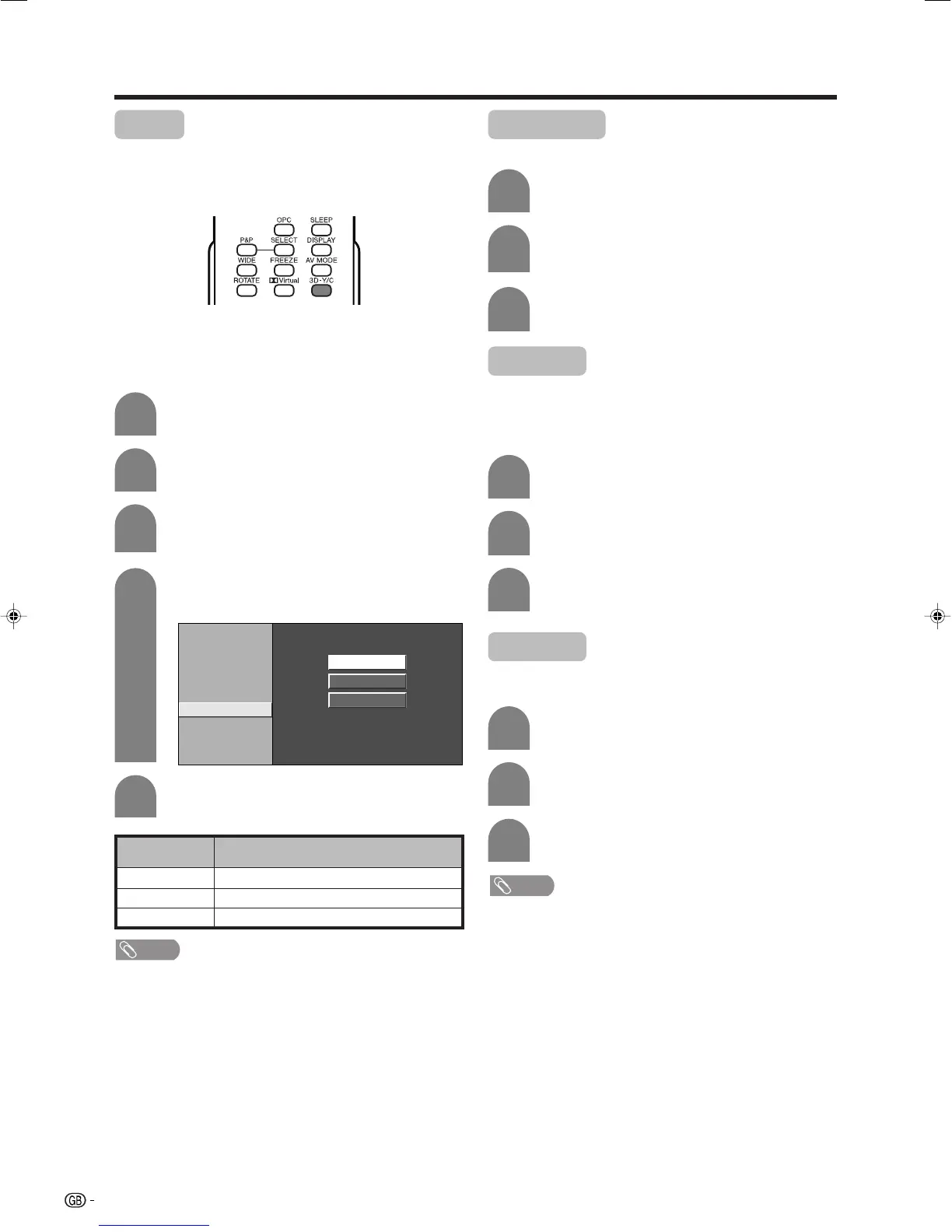 Press 3D-Y/C to switch the 3D-Y/C function on and