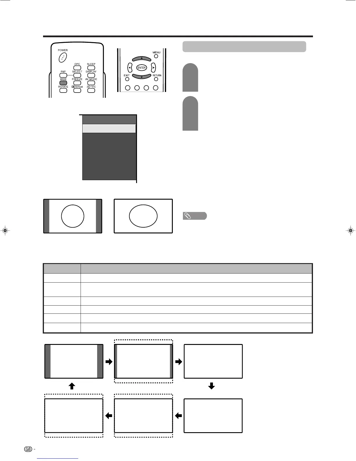 For 14:9 letterbox pictures. A thin side bar appears on each side, and you may also see bars on