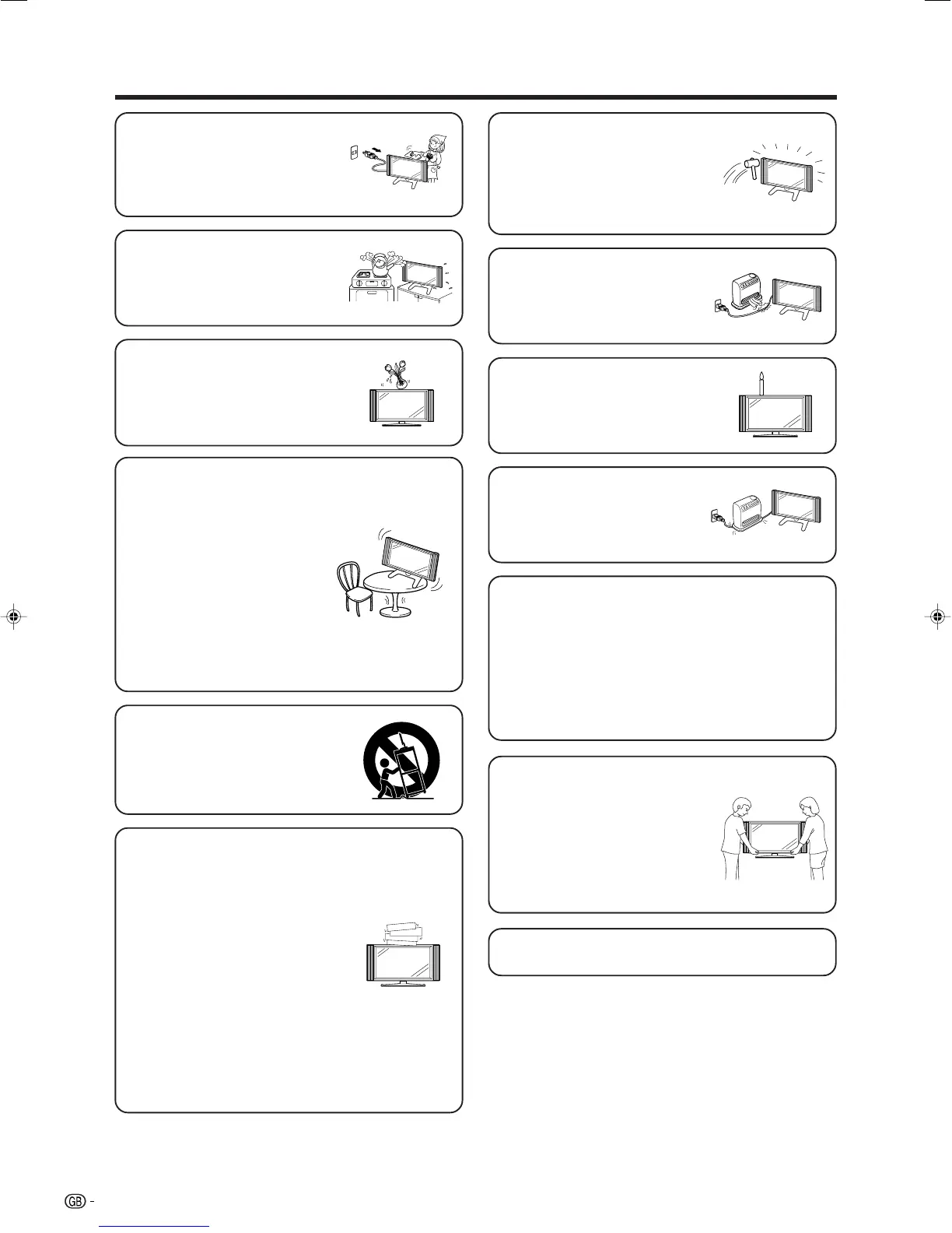 • Do not place vases or any other