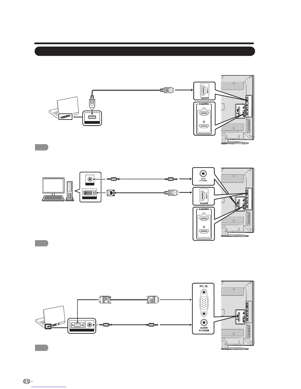 • Al utilizar un cable de conversión DVI-HDMI, deberá realizar una conexión de audio analógica. En este caso, además de