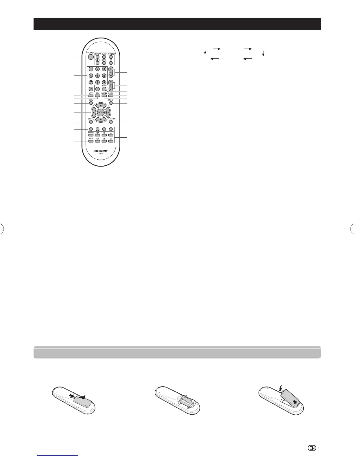 Before using the TV for the first time, insert a “AA” size battery (supplied). When the battery become depleted and the